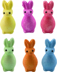 Ez a dekoratív szett hat bájos nyuszit tartalmaz sárga, kék, rózsaszín, zöld, narancssárga és lila színben. A finom csillámokkal díszített felület magára vonja a tekintetet, és fokozza a tavaszi és húsvéti hangulatot bármely enteriőrben. A könnyű hungarocellnek köszönhetően a díszek könnyen mozgathatók és a gyerekek számára is biztonságosak.