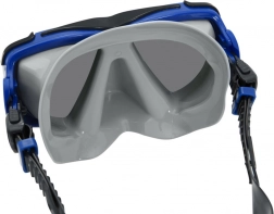 A maszk állítható pánttal és puha szilikon tömítéssel az arc formájához igazodik, és hosszas úszás közben is stabilan tart. Az ergonomikus szilikon szájrész kellemes a szájban.