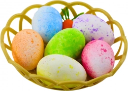 Ez a szép húsvéti készlet színes pöttyös tojásokból és stílusos műanyag sárgarépából áll, amelyeket egy kidolgozott műanyag kosárban helyeztek el, tökéletes a tavaszi hangulat megteremtéséhez. A tojások könnyű és tartós polisztirolból készültek, míg a műanyag kosár stabilitást és könnyű karbantartást biztosít.