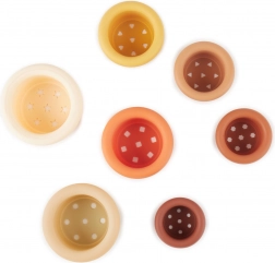 A Bieco szilikon rakosgatható pohárkészlete kellemes, földszínű árnyalatokban végtelen játéklehetőséget kínál otthon és a szabadban. A gyerekek tornyot építhetnek, vizet önthetnek vagy homokban játszhatnak – a biztonságos és tartós anyag bírja a mindennapi kalandokat, és könnyen tisztítható vízzel és enyhe szappannal.