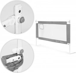 Az univerzális rögzítőrendszer megkönnyíti a telepítést különböző ágytípusokra, a több panel összekapcsolásának lehetősége pedig védett teret alakít ki az ágy pereme mentén. A acél, PP és minőségi textil tartós kombinációja stabilitást és egyszerű karbantartást garantál – a huzat levehető és mosható.