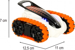 A kompakt RC lánctalpas jármű, a REVOLT BIOTRAX futurisztikus dizájnnal, strapabíró felépítéssel és zökkenőmentes vezérléssel a 2,4 GHz-es frekvencián nyűgöz le. A gumilánctalpnak köszönhetően megbirkózik a szőnyeggel és a kerttel is, a távirányító hatótávja kb. 20 m, a sebesség pedig akár 8 km/óra. A beépített LED világítás látványos effektet ad a menetnek, a 8 évesnél idősebb gyerekeknek pedig rengeteg akciót kínál.