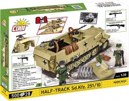 A Half-Track Sd.Kfz. 251 építőkészlet hiteles építési és játékélményt nyújt. A részletes nyomatoknak, a mozgó kerekeknek gumiabroncsokkal és a valósághű lánctalpaknak köszönhetően a modell úgy viselkedik, mint egy igazi jármű. A nyitható hátsó ajtó és a sok kiegészítő támogatja a kreatív jeleneteket.