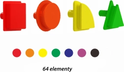A játékkal való foglalkozás ösztönzi a logikai gondolkodást, kreatív szórakozást és fejleszti mind a finom-, mind a durva motorikát. A csipeszek 4 különböző geometriai formában és 8 színben elérhetőek, ami széles kreatív variabilitást biztosít.