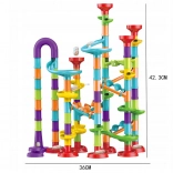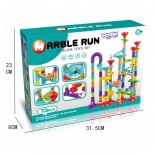 A minőségi műanyag elemek könnyen illeszkednek és stabilan tartanak. A kb. 10 mm átmérőjű golyók egyenletesen haladnak át az átlátszó és színes elemeken. Az összeszerelt pálya kompakt méretű, így a kisebb gyerekszobákban is elfér.