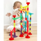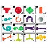 Különféle csövek, kanyarok, spirálok, tölcsérek és oszlopok segítségével mindig új és szórakoztató golyópályát építhet. Építsen a képes útmutató alapján, vagy alkosson egyedi, ötletes pályákat.