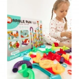 Állítson össze egyedi pályákat, kövesse a süvítő golyókat, és fedezze fel a gravitáció és a sebesség törvényszerűségeit. A variálható készlet lehetővé teszi, hogy a képes útmutató szerint építsen, vagy saját konstrukciókat alkosson rámpákkal, hidakkal, spirálokkal és tölcsérekkel. Minden futam más, és a gyerekeket tervezésre és kísérletezésre ösztönzi.