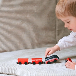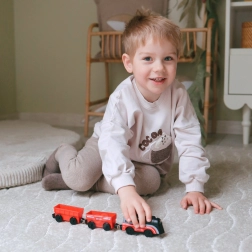Erős, de biztonságos mágnesek teszik lehetővé, hogy a gyerekek könnyedén csatlakoztassák és lekapcsolják a vagonokat. A szerelvény összeállítása gyors és szórakoztató.