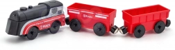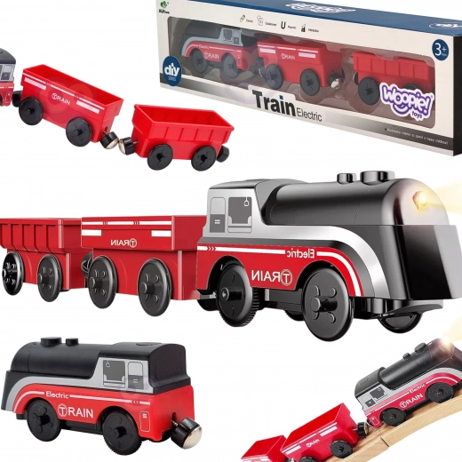 A készlet mágneses kapcsolódást használ a vagonoknál a gyors és intuitív összekapcsoláshoz. A mozdonyt egy darab AAA elem működteti (nem tartozék), menet közben fény gyullad ki, és egyenletesen halad, mint egy igazi vonat. A szabványos nyomtávnak köszönhetően kompatibilis a legtöbb fa sínrendszerrel (sín szélessége kb. 4 cm, tengelyke szélessége kb. 2,5 cm) – remek kiegészítője az IKEA, Brio és más készleteknek.