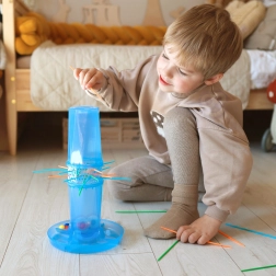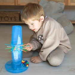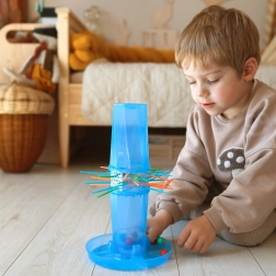 Népszerű társasjáték átlátszó toronnyal, színes pálcikákkal és golyókkal. Minden húzás számít – húzd ki a megfelelő pálcikát, és tartsd fenn a golyókat. A játék 3 éves kortól és felnőtteknek is ideális, gyors és egyszerű szabályokkal, és a strapabíró műanyag kivitelnek köszönhetően bírja a gyakori használatot.