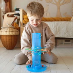 Az átlátszó torony, a színes pálcikák és a minőségi műanyagból készült golyók vonzó megjelenést és hosszú élettartamot biztosítanak gyakori játék mellett is.