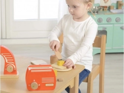 Fa pirítós Masterkidz ideális választás gyerekek számára, akik szívesen játszanak otthoni szerepjátékokat. Kiváló minőségű természetes fából készült, biztonságos a gyerekek számára. A pirítós funkcionális karral van felszerelve, amely szimulálja a kenyerek kiugrását, és forgatható gombbal, ami valósághű játéktapasztalatot nyújt.