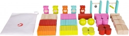 Minőségi fa kivitel sima élekkel és tartós festéssel – kíméletes a gyerekekhez és a természethez. A csomag tartalmaz tárolózsákot is.