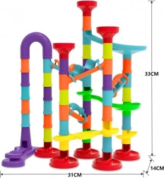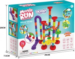 A kreatív WOOPIE golyópálya-építő készlet ideális játék a kíváncsi gyerekeknek. A színes elemeknek és a különböző formájú csöveknek, tölcséreknek és kanyaroknak köszönhetően a gyerekek könnyedén összeállítják saját egyedi pályáikat, és figyelhetik, ahogy a golyók egymás után száguldanak.