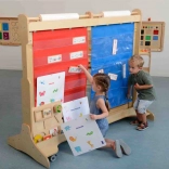 A panel könnyű, hordozható és kétoldalas – a hátoldal tépőzáras felülete lehetővé teszi különféle eszközök rögzítését. A füleknek köszönhetően gyorsan felakasztható falra, ajtóra vagy állványra, és használható a MASTERKIDZ tábláival és állványaival (beleértve a STEM táblát is).