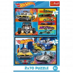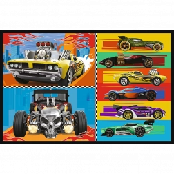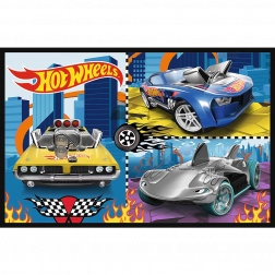Ez a puzzle két képet kínál összerakásra, ami lehetővé teszi, hogy több gyerek is csatlakozzon a játékhoz. Mindegyik kirakó 70 darabból áll, és egy 275x180 mm méretű képet alkot. A Hot Wheels motívumok minden kis autórajongót elbűvölnek.