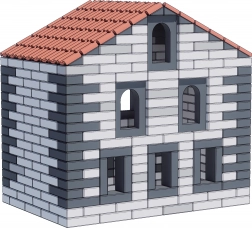 A készlet részei háromszög alakú tartógerendák, íves ablakok és 32 tetőelem – ideális kiegészítő bármely építmény befejezéséhez.
