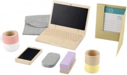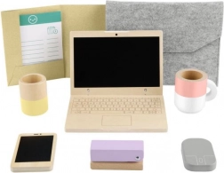 Engedje, hogy a gyerekek a maguk módján fedezzék fel a felnőttek világát. Ez az átgondolt, fából készült „home office” készlet hiteles kiegészítőket kínál biztonságos és kellemes kivitelben. A „laptop” és a „mobil” krétatáblás kijelzővel végtelen írásra, rajzolásra és történetalkotásra hív – papírpazarlás nélkül. Az FSC minősítésű minőségi fa kellemes tapintású, és a mindennapos gyermeki fantáziának is ellenáll.
