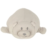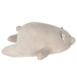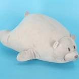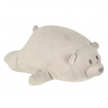 Puha mackó barátságos megjelenéssel, amely minden gyermeket elvarázsol, és kényelmes párnaként is szolgál.