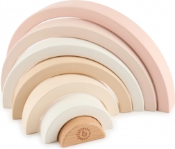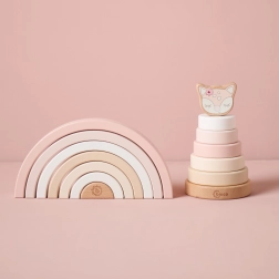 Ez a letisztult, minimalista fa szivárvány kedvenc játékká és a gyerekszoba dizájnkiegészítőjévé válik. A gyerekek az íveket rakosgathatják, válogathatják, hidakat és alagutakat építhetnek, vagy házikóként és karámként használhatják a figuráknak. Az egyszerű formák ösztönzik a fantáziát és az önálló játékot.