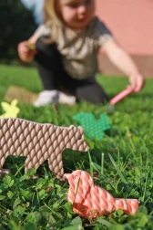 A VYLEN anyag cseh tanúsított termék, rendszeresen tesztelt és egészségre ártalmatlan. A játékok szakadásállók és könnyen tisztíthatók – szennyeződés esetén egyszerűen leöblíthetők.