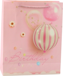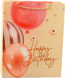 A Happy Birthday felirattal és vidám lufimotívummal díszített ajándéktáska remek választás bármely születésnapra. A rózsaszín, kék, lila és barack árnyalatú, látványos dizájnt praktikus kivitel egészíti ki, amely a nehezebb ajándékokat is biztonságosan tartja.