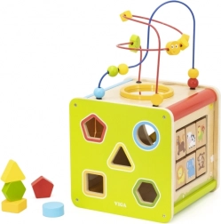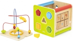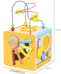 fa oktatókocka 5 az 1-ben labirintussal, formákkal és xilofonnal