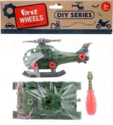 Szórakoztató csavarozható készlet kis építőknek, amely egy tankot, egy helikoptert és egy csavarhúzót tartalmaz. A tartós műanyagból készült játékok fejlesztik a finommotorikát, a logikus gondolkodást és a kreativitást. Ideális ajándék 3 éves kortól.