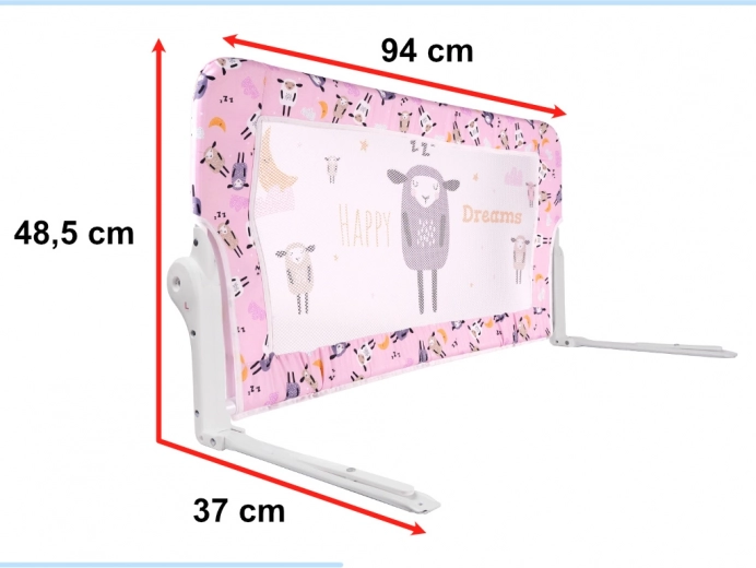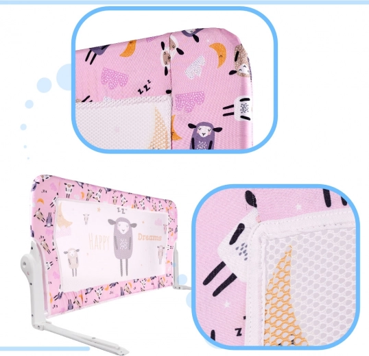 A telepítés gyors és fúrásmentes – a lábakat elég a matrac alá csúsztatni. A finom rózsaszín bárány motívum a legtöbb enteriőrhöz illik, és otthonosabbá teszi a gyerekszobát. Ideális a kiságyból a nagy ágyra való átmenethez, segít a szülőknek és a gyerekeknek nyugodtabban és biztonságosabban aludni.