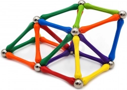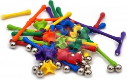 33 fémgolyó 1,2 cm átmérővel, 56 műanyag pálcika 6 cm hosszúságban, 21 összekötő elem