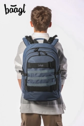 BAAGL Skate Dust Blue iskolatáska könnyű és stílusos kiegészítő harmadik osztálytól ajánlott iskolásoknak. Vízálló, újrahasznosított anyagból készült, a fényvisszaverő elemeknek köszönhetően kényelmet és biztonságot nyújt.