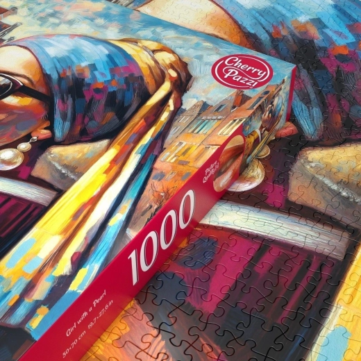 Cherry Pazzi Puzzle Lány gyönggyel 1000 darab. Kiváló minőségű puzzle művészet szerelmeseinek, 50x70 cm-es méretben.