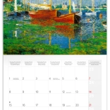 Változtassa lakását művészeti galériává egy naptárral, ami Claude Monet leghíresebb festményeinek reprodukcióit tartalmazza. Ez a naptár tartalmaz egy hatnyelvű naptárbeosztást és biztosít elegendő helyet terveihez és jegyzeteihez.