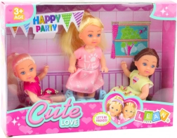 Ez a három mini baba készlet ideális kreatív játékhoz és a gyermekek képzelőerejének fejlesztéséhez. A babákat a részletekre helyezett hangsúlyal tervezték – az egyedi hajszínektől, a díszített ruhákon át a tökéletesen passzoló kék cipőkig. Készen állnak egy születésnapi bulira, ami inspirálja a gyerekeket a szerepjátékra és a barátokkal való szórakozásra.