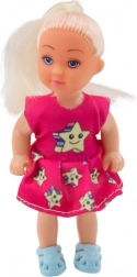 - Baba világos szőke hajjal, sötét rózsaszín, csillagos ruhában