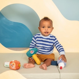 Ez az egyedülálló láncfűrész alakú csörgő tökéletes választás a kis barkácsolóknak, akik szeretnék utánozni a felnőttek játékát. Gyermeke imádni fogja az fűrészelés játékot mint a barátunk, Oroszlán Jack. Az érzékek stimulálása és a fantázia támogatása mellett a csörgő aktív utánzást is fejleszt.