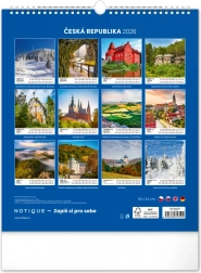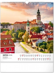Fali naptár a 2026-os évre, amely bemutatja Csehország festői helyeit, a Karlovy Vary-tól Znojmo-ig. Ideális mindenki számára, aki szereti a cseh tájat.