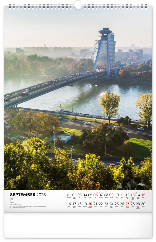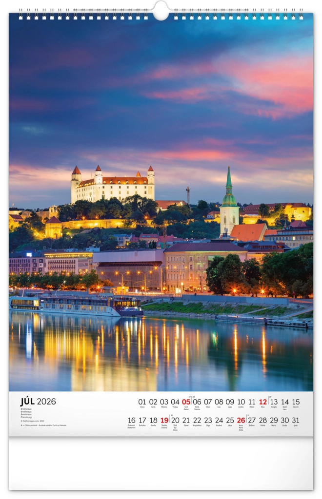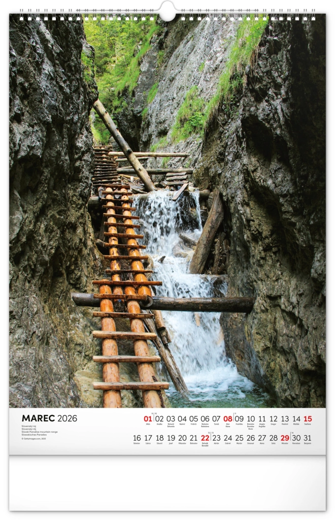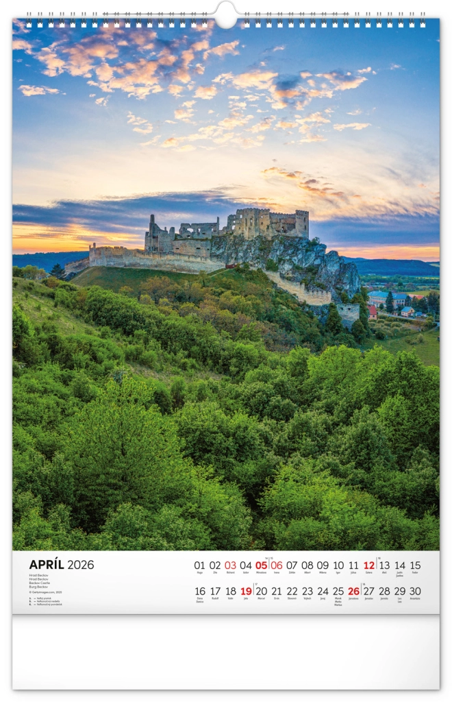 Fali naptár A Mi Szlovákiánk 2026 ideális választás a szlovák építészet és a természet szerelmesei számára. Lenyűgöző fényképeket tartalmaz, amelyek megörökítik a szlovák emlékek szépségét és praktikus funkcionalitást kínálnak a részletes kalendáriumnak köszönhetően.