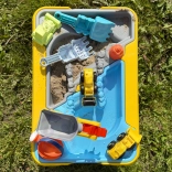 Forgó daru, lejtők, vízikerék és rámpák vonják be a gyerekeket az akcióba. Önts vizet, indíts áramlást, és szállíts anyagot a mini járművekkel.