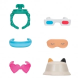 A csomagban különféle tartozékokat találsz – szemüveg, fejpánt, kalapocska vagy alvómaszk – amelyek könnyen cserélhetők. Ez támogatja a kreativitást, a finommotorikát és a szerepjátékot. A készlet remek közös játékhoz, figuracsere-beréhez és saját divatkombinációk megalkotásához.