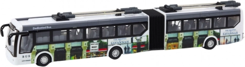A 36 cm hosszú modell kiváló minőségű műanyagból készült, ami biztosítja a tartósságát és az esztétikai megjelenését, amelyet igazi városi trolibuszok ihlettek. A fényhatásoknak és a precíz vezérlésnek köszönhetően izgalmas szórakozást nyújt, valamint fejleszti a gyermek manuális készségét és koordinációs képességeit.
