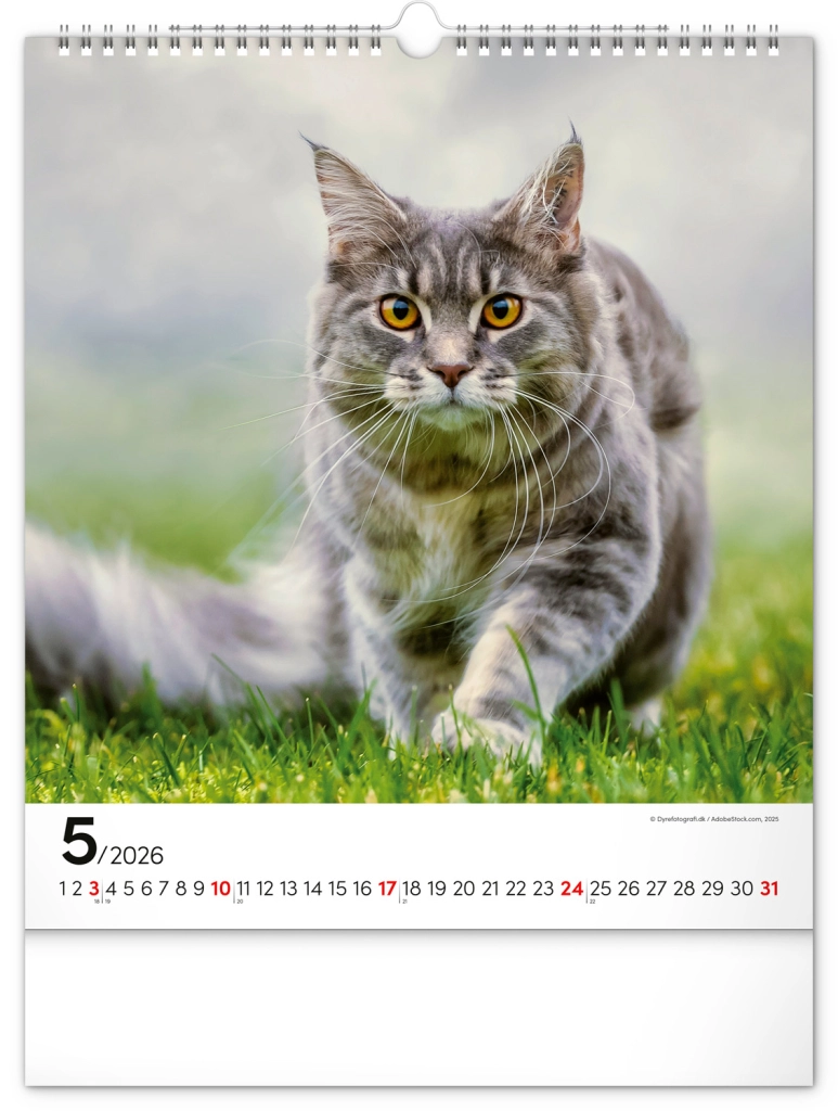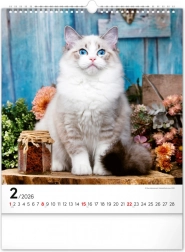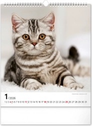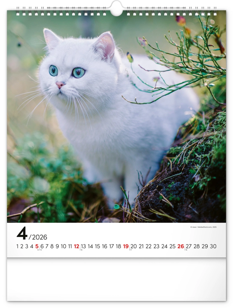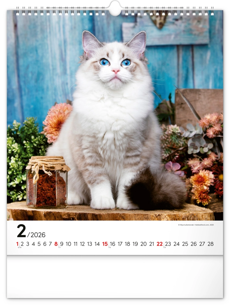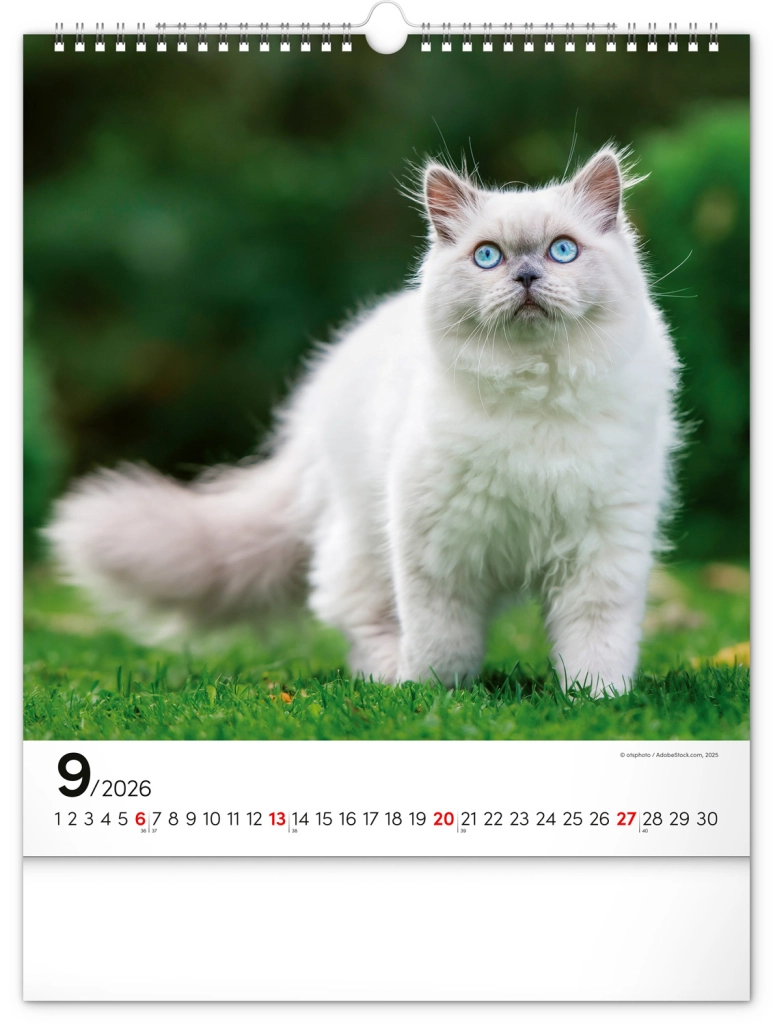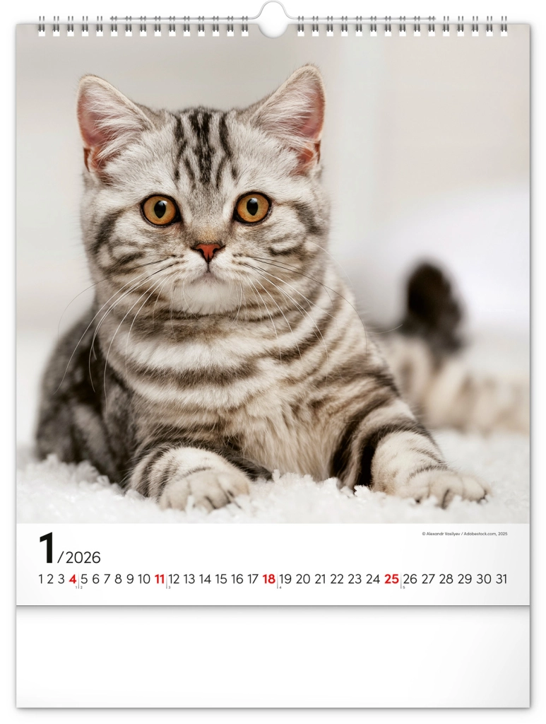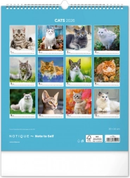 A közkedvelt 'Macskák 2026' fali naptár csodálatos macskafotókat hoz el teljes szépségükben és változatosságukban. Univerzális fehér hátterű naptári elrendezése biztosítja, hogy könnyedén illeszkedjen bármilyen enteriőrbe: