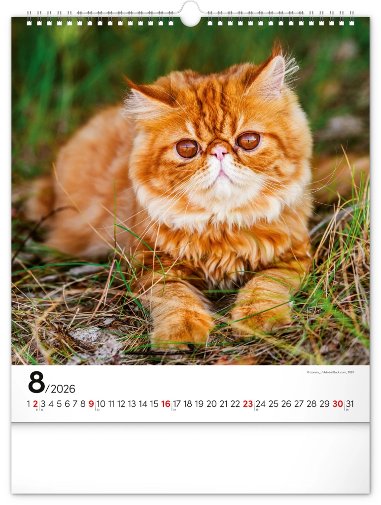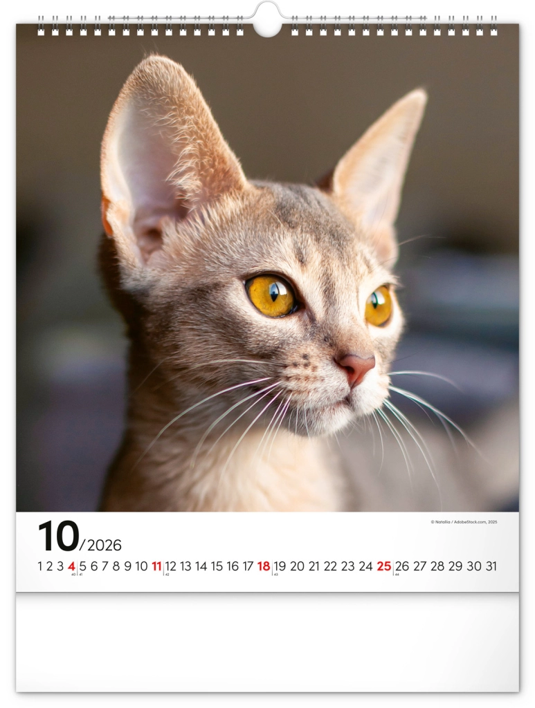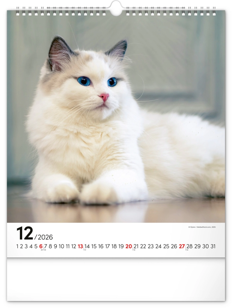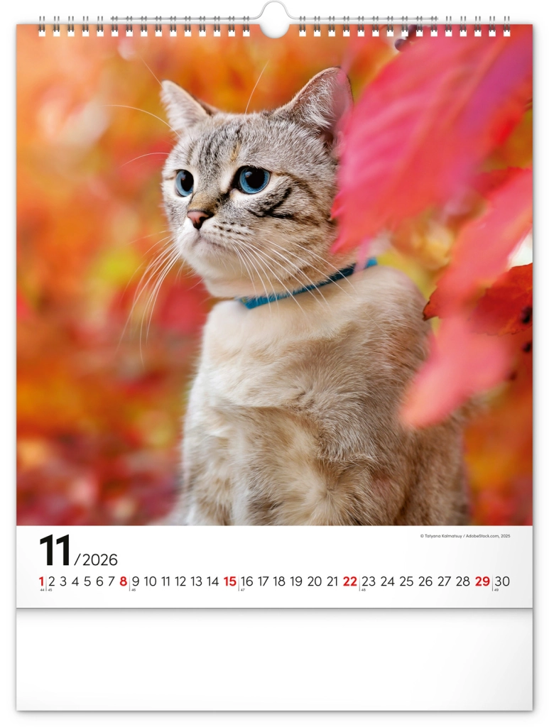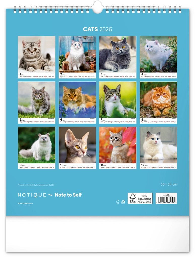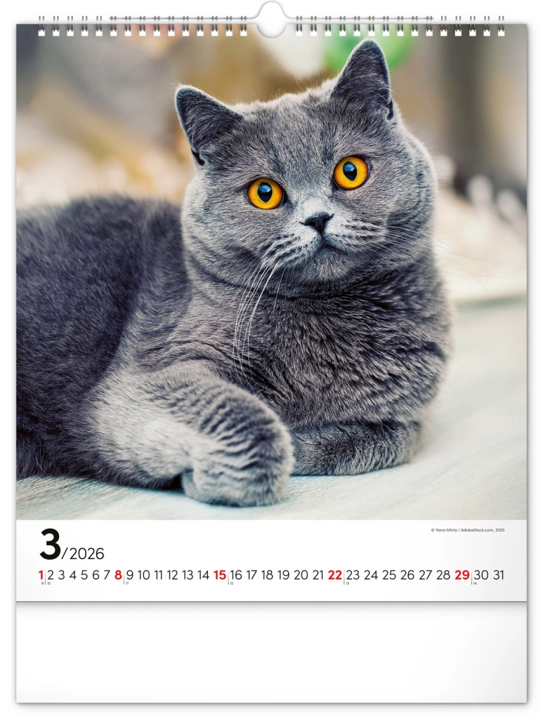 A közkedvelt 'Macskák 2026' fali naptár csodálatos macskafotókat hoz el teljes szépségükben és változatosságukban. Univerzális fehér hátterű naptári elrendezése biztosítja, hogy könnyedén illeszkedjen bármilyen enteriőrbe: