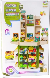 Változtassa gyermeke szobáját valóságos szupermarketté az interaktív Friss Szupermarket játékkal. Ez a 67 darabos készlet élelmiszer-, ital- és csomagolás-utánzatokat, zöldséget és gyümölcsöt, gombos pénztárgépet, árleolvasót, terminált és kiállító polcokat tartalmaz, amelyeknek köszönhetően a gyermek eladóvá vagy vásárlóvá válhat.