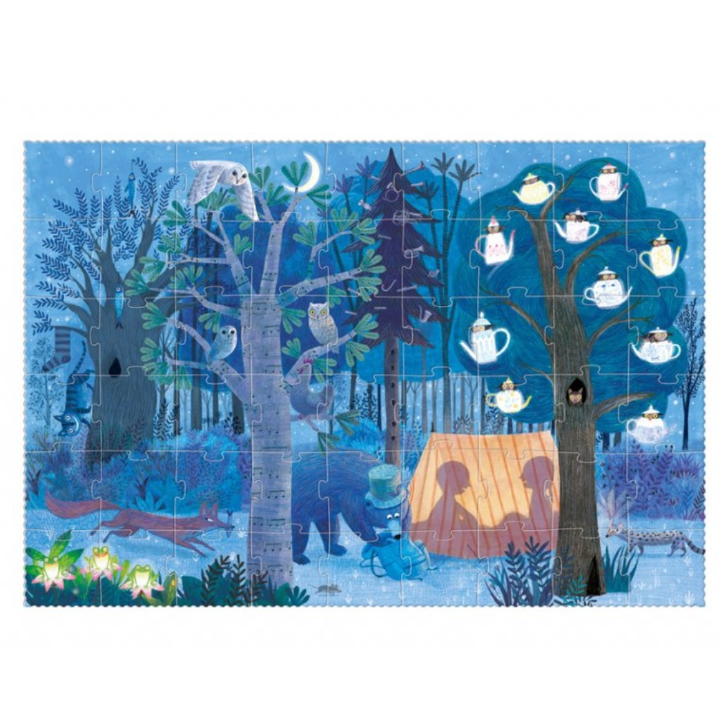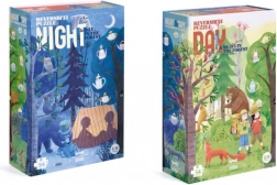 Szórakoztassa magát a kétszínű puzzle Nap és Éjszaka az erdőben, amely két különböző jelenetet kínál gyönyörű illusztrációkkal egy darabon. Ideális a gyermekek képzelőerejének és finommotoros képességeinek fejlesztésére.