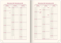 Ez a stílusos nádiár lekerekített sarkokkal, tolltartó hurokkal és rugalmas gumival rendelkezik, ami praktikussá teszi utazáshoz. Tartalmaz cseh-szlovák naptárbeosztást, amely angol, német, magyar és orosz nyelvvel kiegészített.