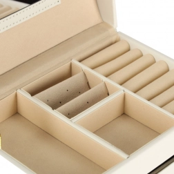 Speciális gyűrűtartó hengerek, fülbevalópanel és elkülönített rekeszek gondoskodnak róla, hogy ékszereid rendezetten, gubancolódás és karcolások nélkül legyenek tárolva.