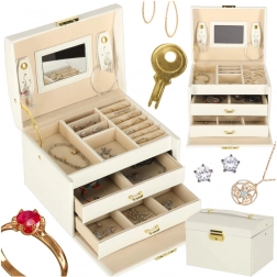 Beépített tükre megkönnyíti a reggeli ékszerválasztást, a kulccsal zárható mechanika pedig biztonságban tartja őket, amikor nem vagy a közelben.