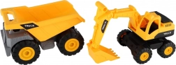 Remek készlet kis építőknek! Két tartós műanyag építési jármű szabadon futással, amelyek tökéletesen illeszkednek minden gyűjteménybe. Könnyen mozognak bármilyen felületen – elég, ha finoman meglökjük őket, és gurulnak.