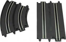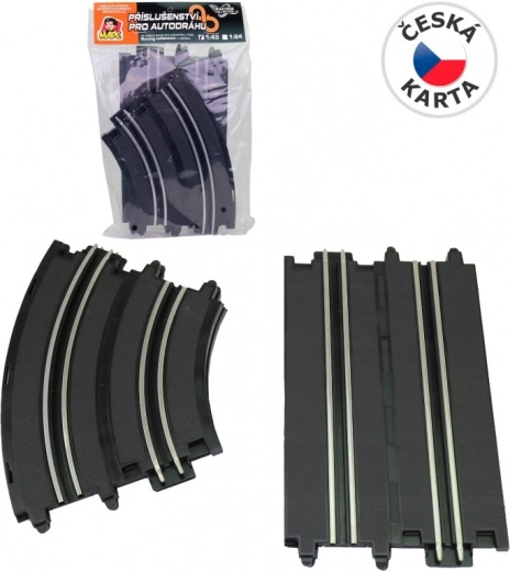Tartalék alkatrészek a Racing kollekcióhoz 1:43 méretarányban. A csomag négy darab jó minőségű műanyagból készült pályadarabot tartalmaz, ideális az autópályád bővítéséhez és a játék szórakoztatóbbá tételéhez.
